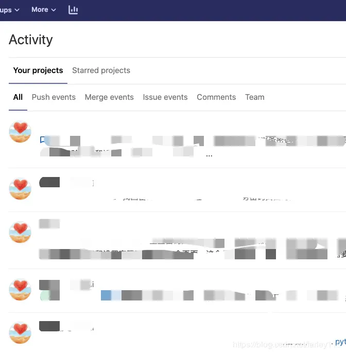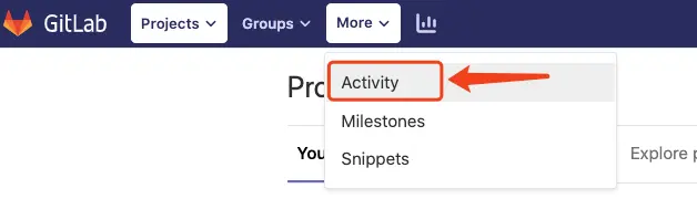 管理员级别的账号就不需要多说了,我们先看gitlab,我们的目的是统计每个人每天的提交量,那么通过GitlabGUI界面是否能实现?可以,通过以下功能进入活动页面: