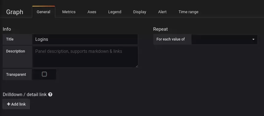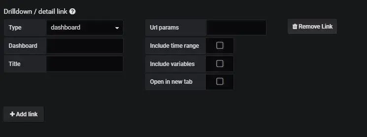 每个链接都有标题、类型和参数。链接可以是指示板链接(dashboard),也可以是绝对链接(absolute)。如果是仪表板链接,仪表板值必须是仪表板的名称。如果是绝对链接,URL就是链接的URL。