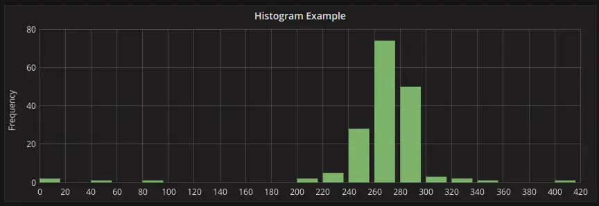 直方图选项将图形转换为直方图。直方图是一种条形图,将数字分组到范围内,通常称为桶或箱。较高的条形图显示更多的数据落在这个范围内。这里将更详细地描述直方图和桶。