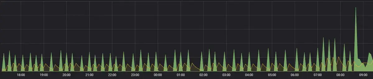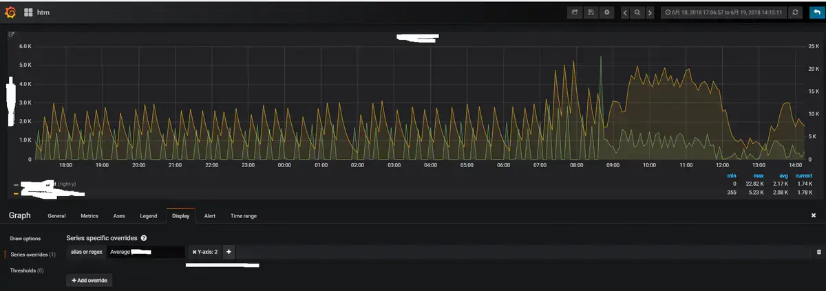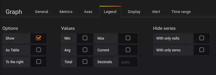 图例值是由Grafana计算的客户端值,取决于您的度量查询使用的聚合或点合并类型。以上图例值不能同时正确。例如,如果您绘制一个速率(比如请求/秒),这可能使用average作为聚合器,那么图例中的Total将不表示请求的总数。它只是Grafana接收到的所有数据点的总和。
