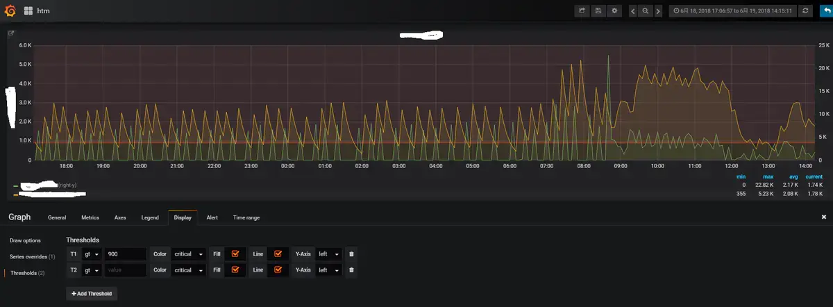 阈值允许向图中添加任意的直线或分段,以便在图跨越特定阈值时更容易查看。