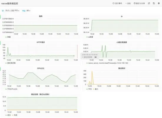 nacos服务端:cpu占比,服务数,实例数,接受请求数量(区分api),请求响应时间(区分api),心跳处理速度,推送耗时(原生),推送量(原生)