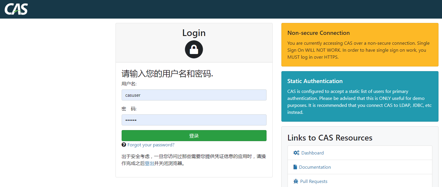 跳转至cas服务端登录页,登录成功后返回/hello页面代表成功