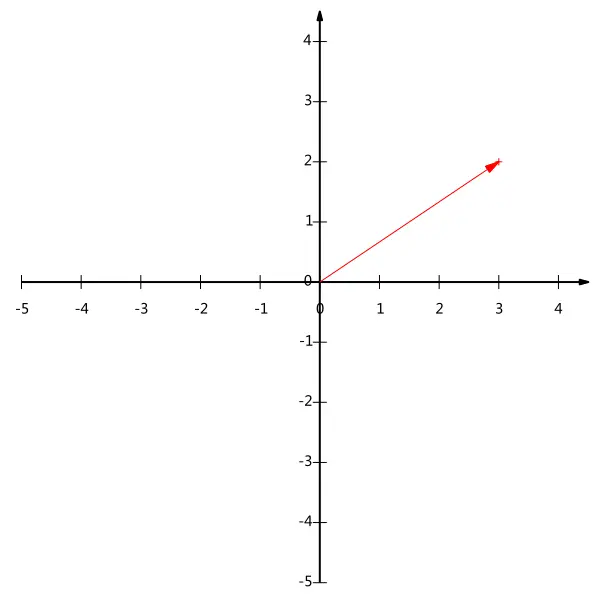 在代数表示方面,我们经常用线段终点的点坐标表示向量,例如上面的向量可以表示为(3,2),这是我们再熟悉不过的向量表示。