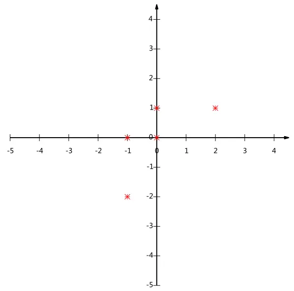 我们可以看下五条数据在平面直角坐标系内的样子: