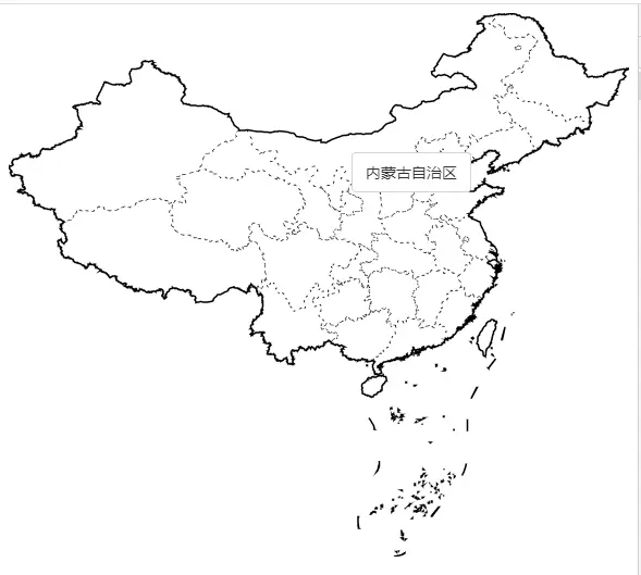 大数据可视化不可绕开的图表便是地图。本章节,我们将简单实现一个完整的中国地图以及简单的交互,并封装成React组件。效果图如下: