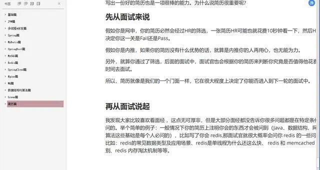 这一份我总结的《JAVA大厂面试汇总》免费分享给大家! 里面详细阐述了各个高需技术点以及面试重点题型! 还有最最重要的简历书写部分,更是由我本人亲手整理,亲手教你如何写出一份让人眼前一新的简历模板来。
