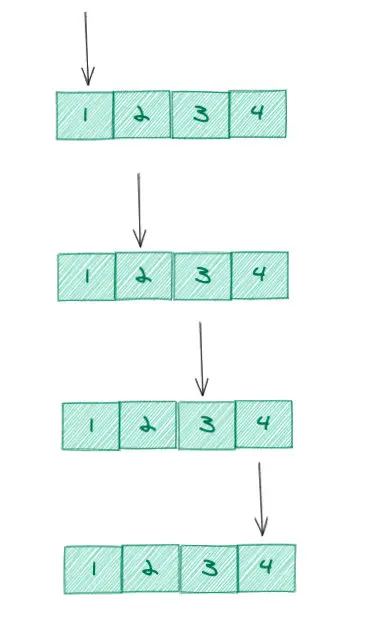 如果说,我们迭代一个数组,并输出数组每一项,我们需要一个指针来记录当前遍历的项,这个过程我们叫单指针(index)的话。