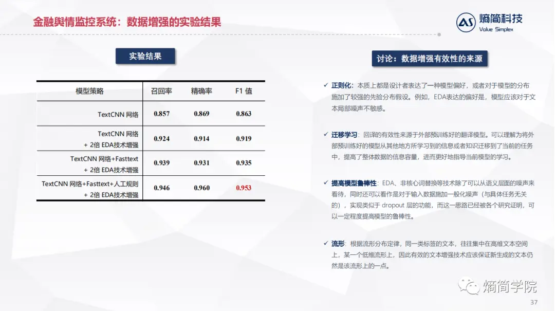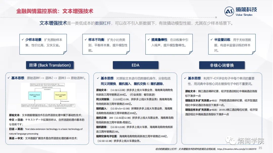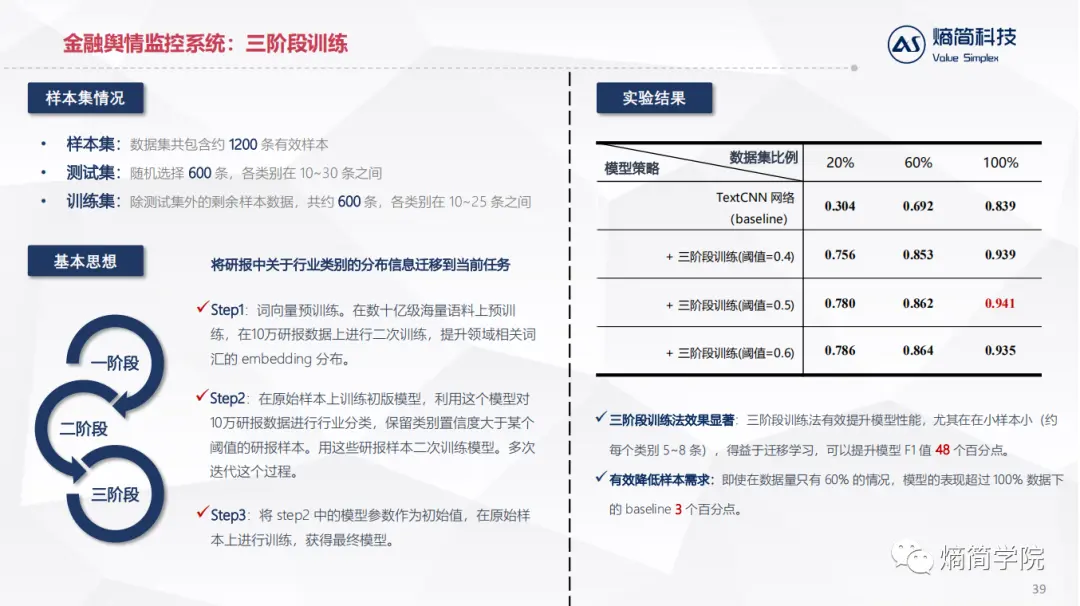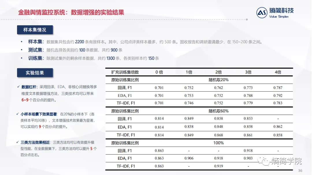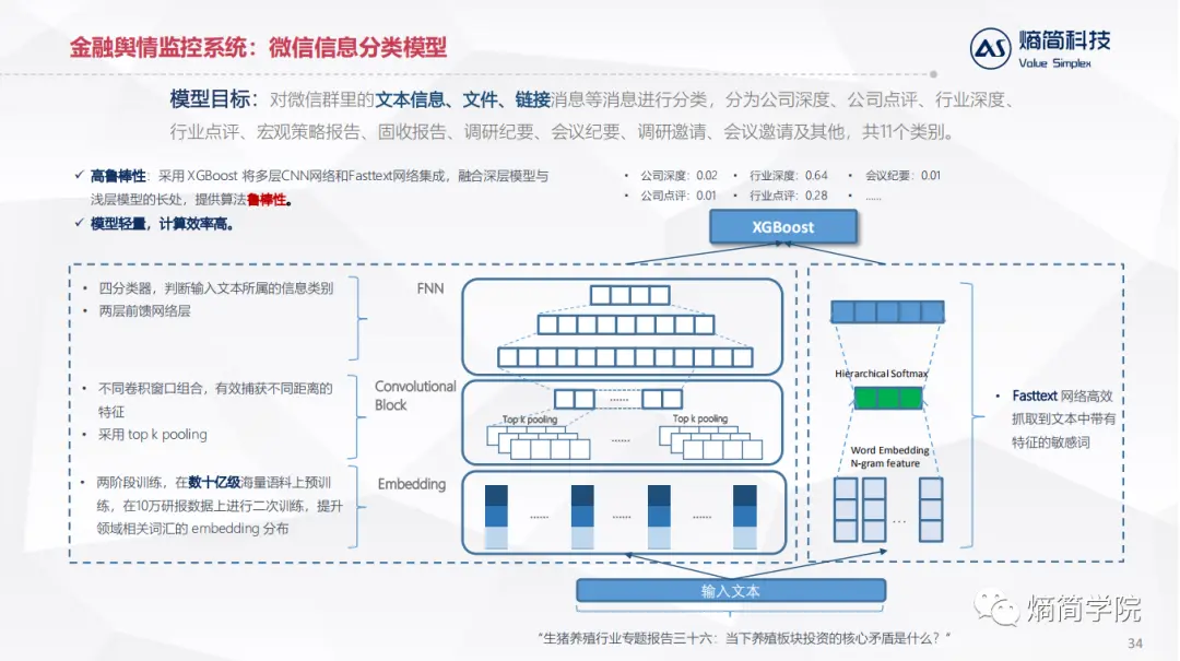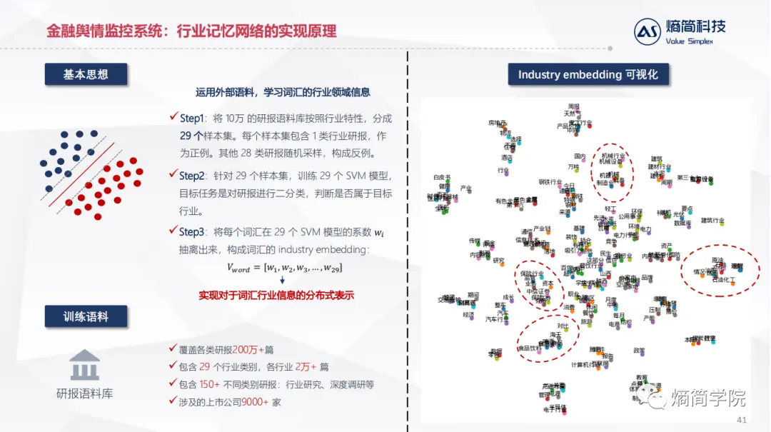 应用层:直接对接业务逻辑,目前熵简科技30+端到端文本分析系统,服务于20+金融资管和咨询领域的机构,累计30+业务应用场景。