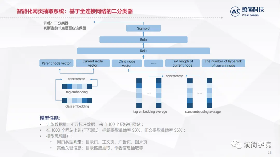 如上图,输入特征主要包括:父节点的标签信息、子节点的标签信息、当前节点的标签信息,以及当前节点在其它方面的特征,比如当前节点包含文本的长度是多少、超链接的数目是多少。
