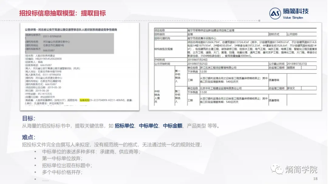 这其中的难点是招投标文件完全由撰写人来拟定,没有规范统一的格式,无法通过统一化的规则处理: