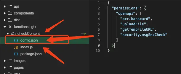 - 1, 云函数内需要建立一个config.json,存放要使用云函数