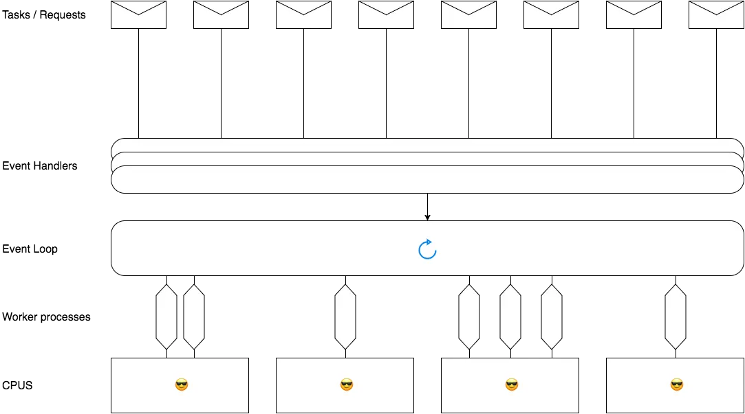 类似也就是v8,基于事件驱动,有效的避免了内存开销和上下文切换,只需要线程间通信,即可在适当的时刻进行事务结果等的反馈。