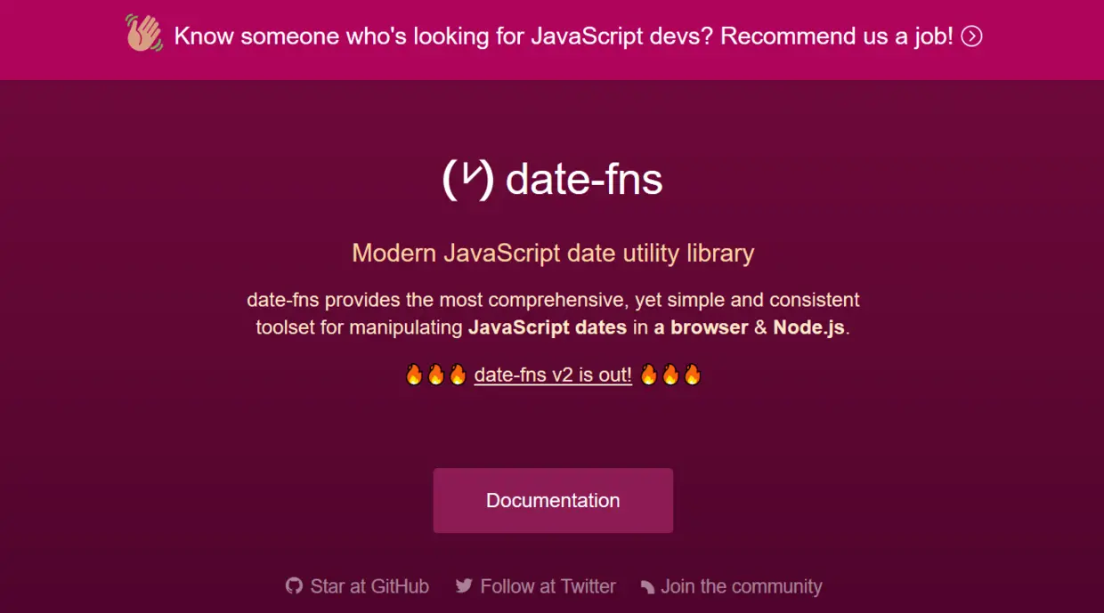 #####3: date-fns star:22.3k 网站地址:date-fns.org GitHub:github.com/date-fns/da…
