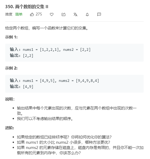 - 存储nums1数组所有元素,遍历nums2数组所有元素,出现重复元素即添加进集合中,并更新重复元素对应的value值