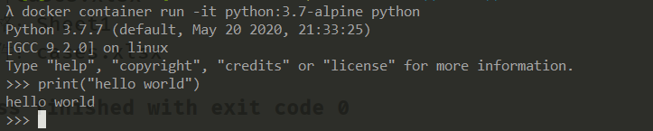 docker container run -it python:3.7-alpine python