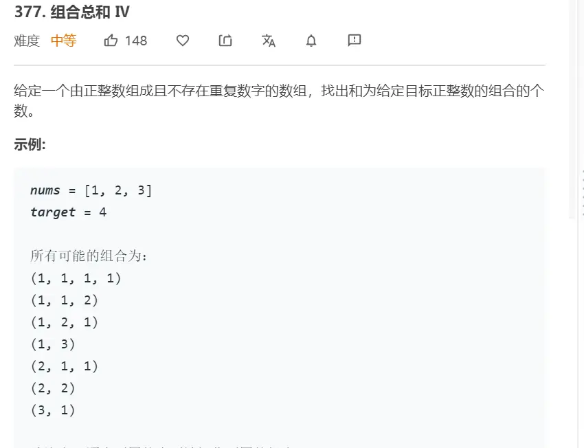 public int combinationSum4(int[] nums, int target) {