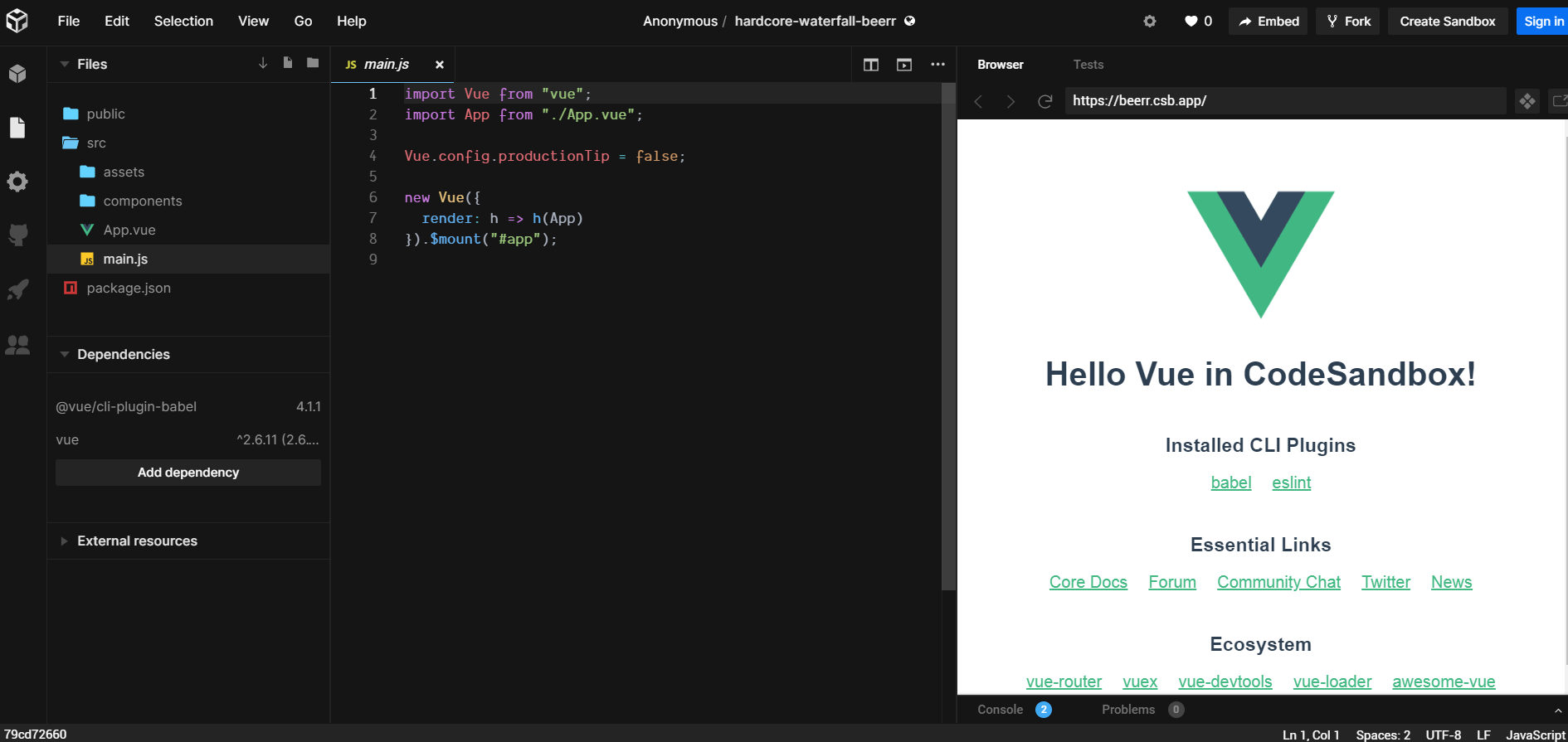 4、如何用 codesandbox.io 写 Vue 代码