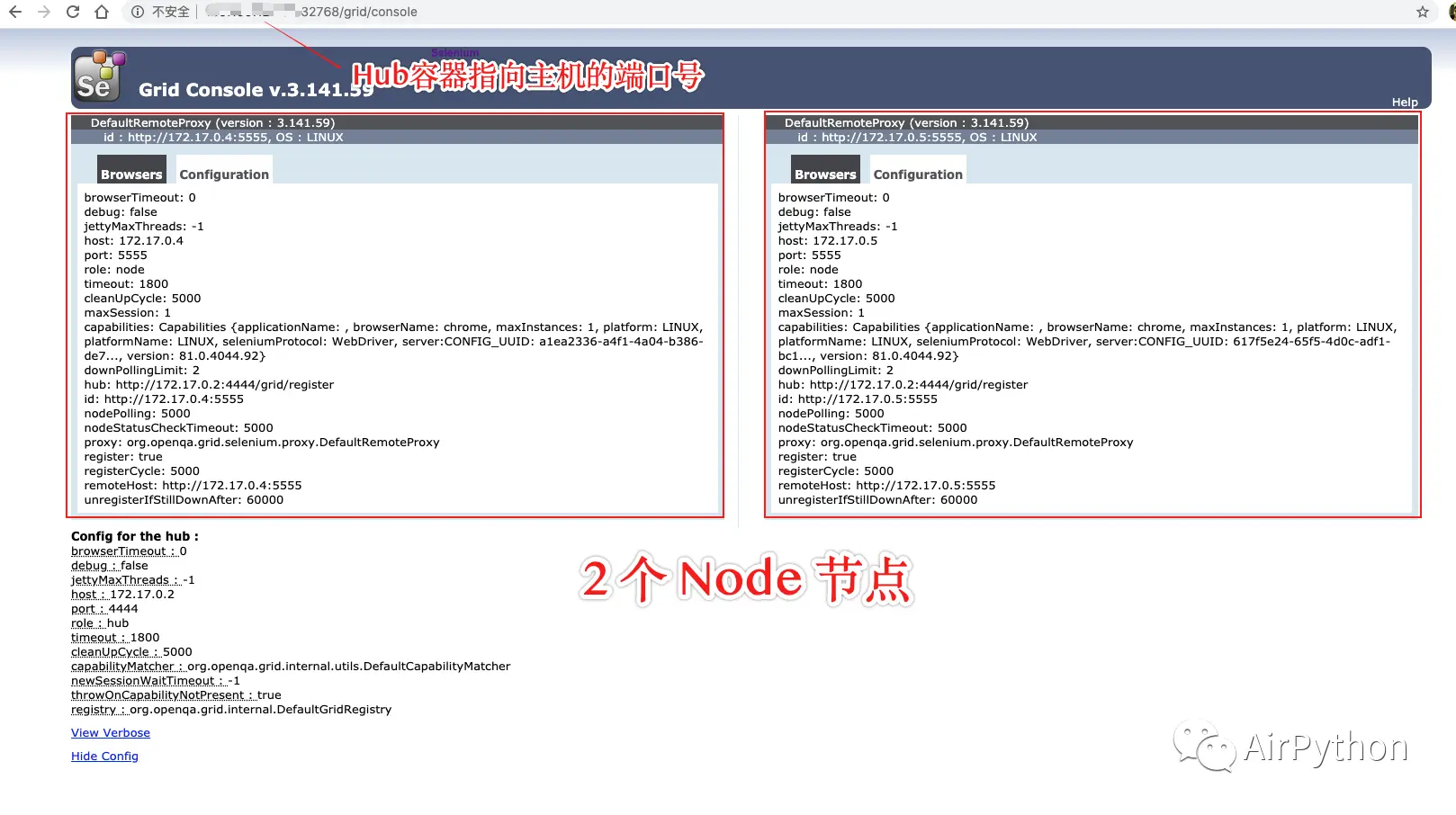 可以很直观地看到当前 Hub 主节点下所有注册的 Node 节点列表