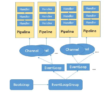 上面我把Netty中几个重要的组件,下面我用一幅图来展示他们之间的关系,如下: