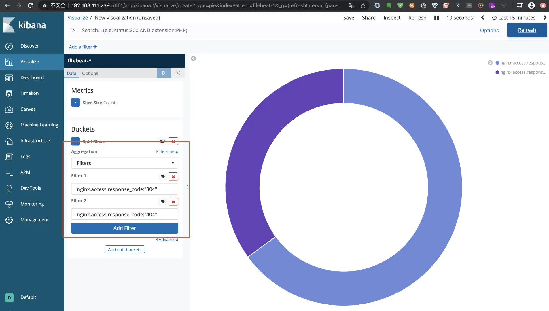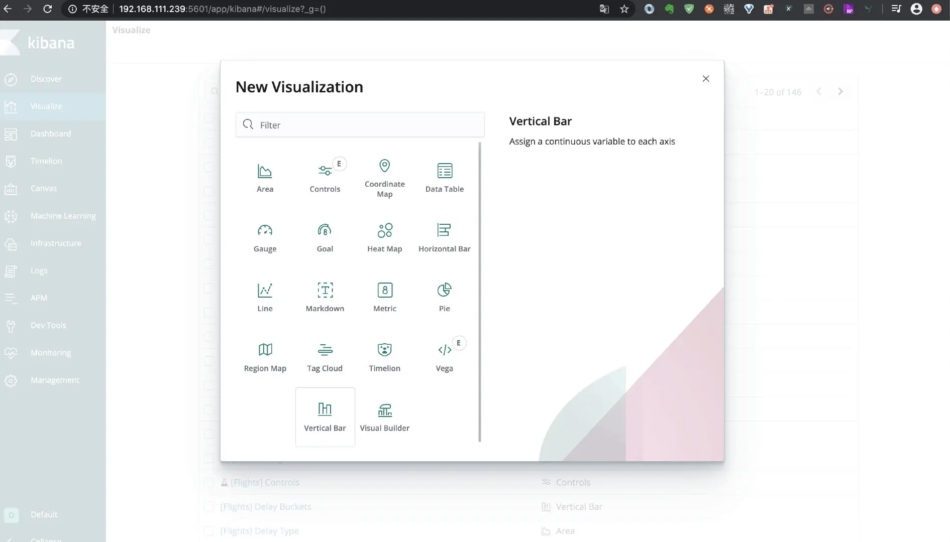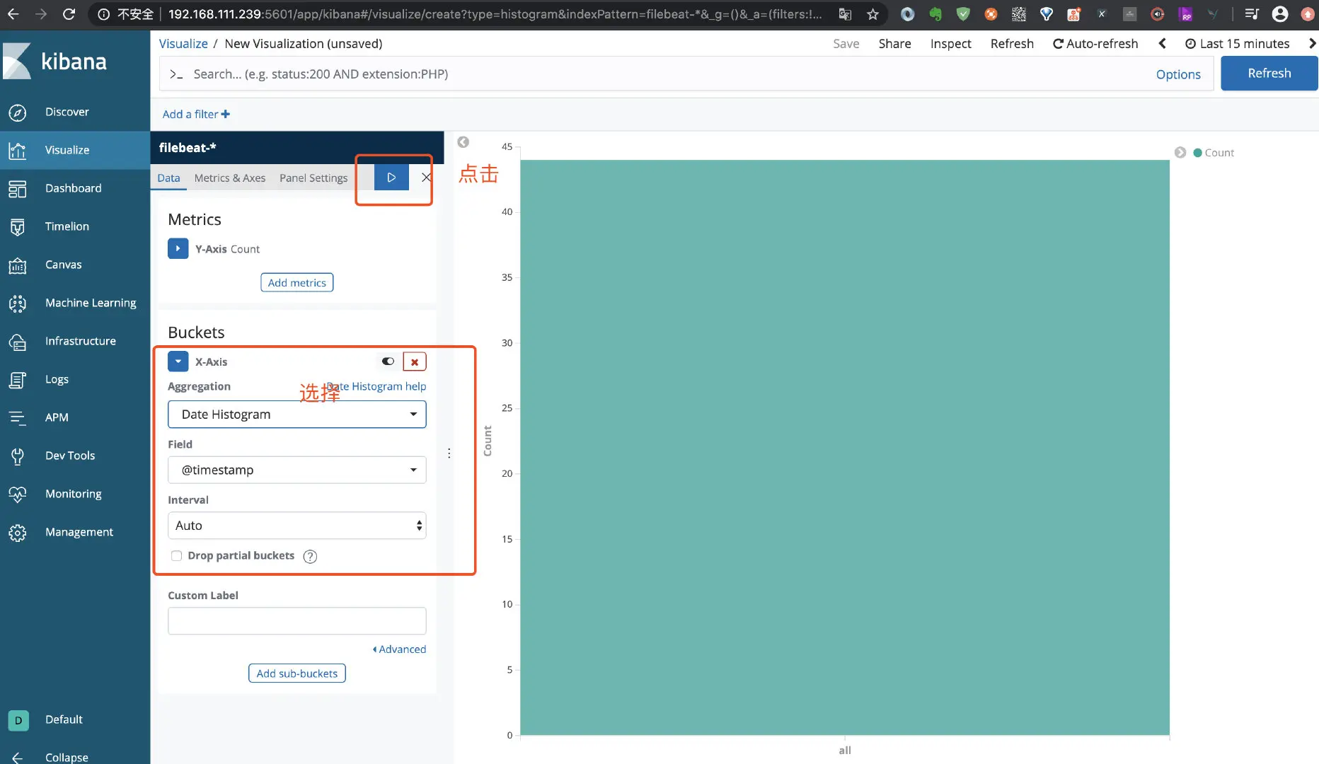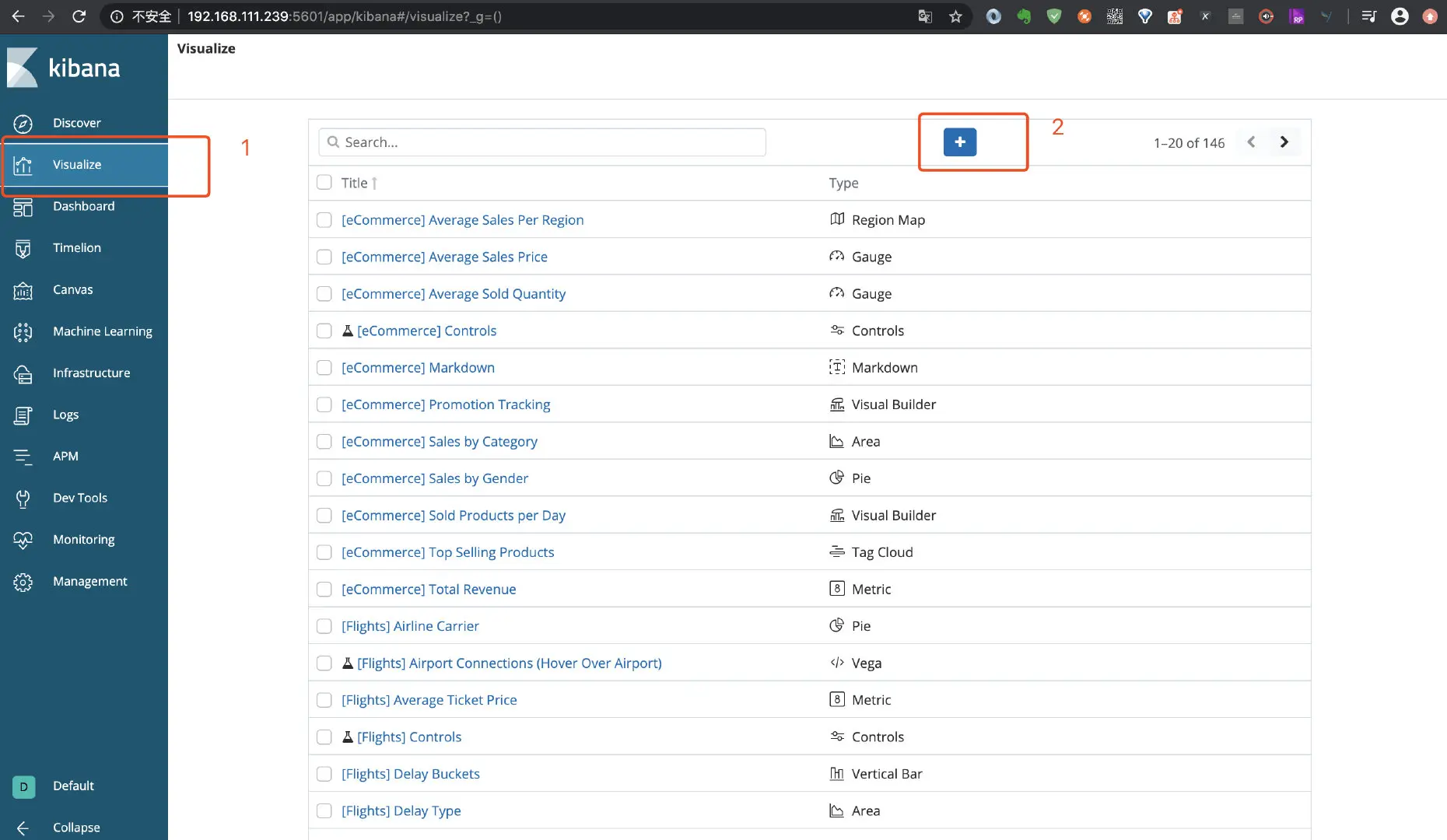 点击左侧菜单 Visualize, 如下图:
