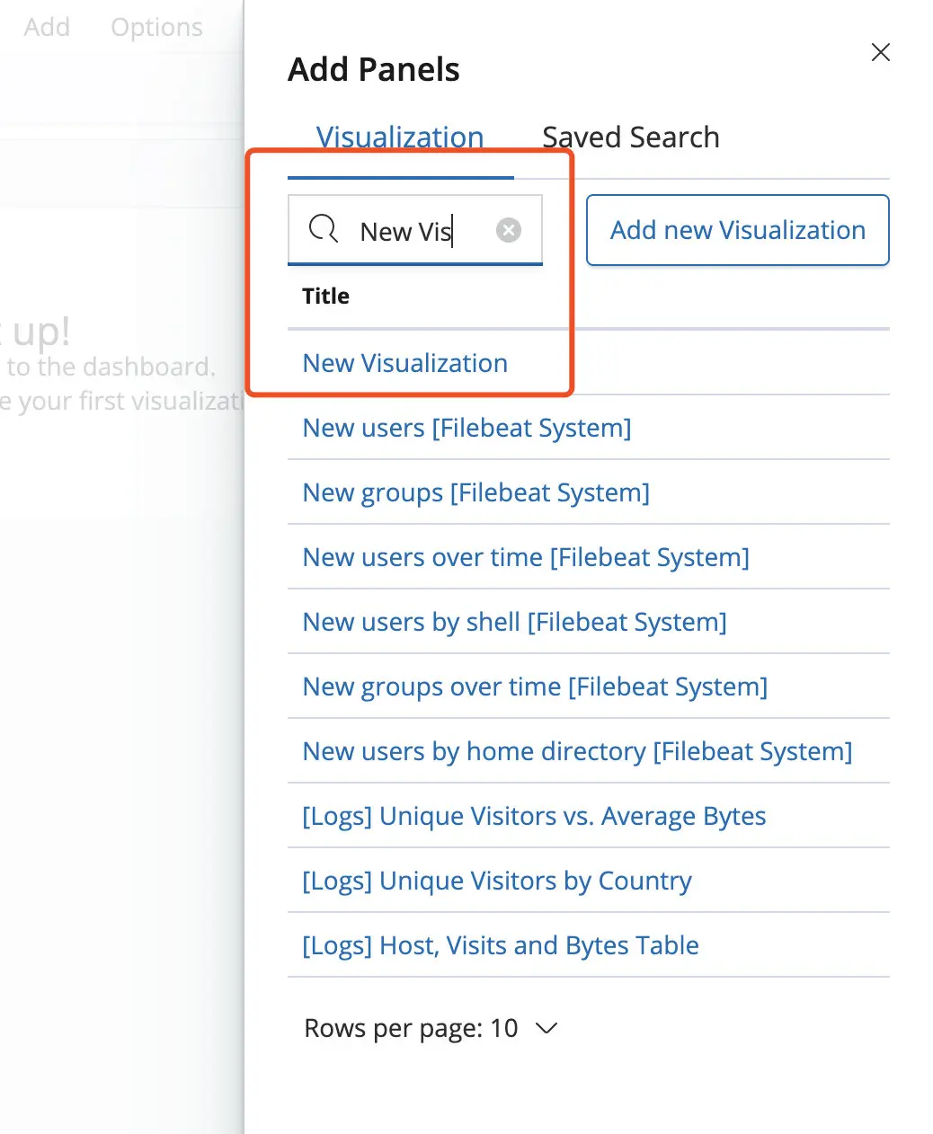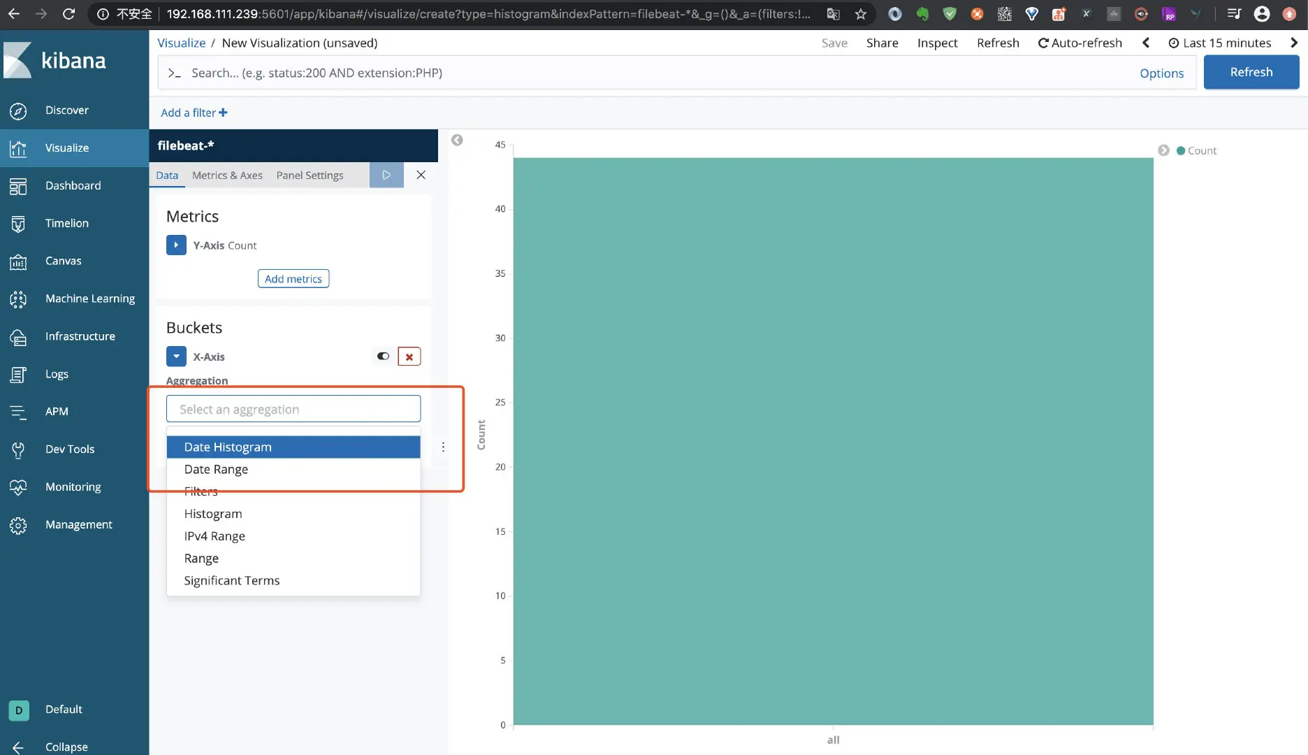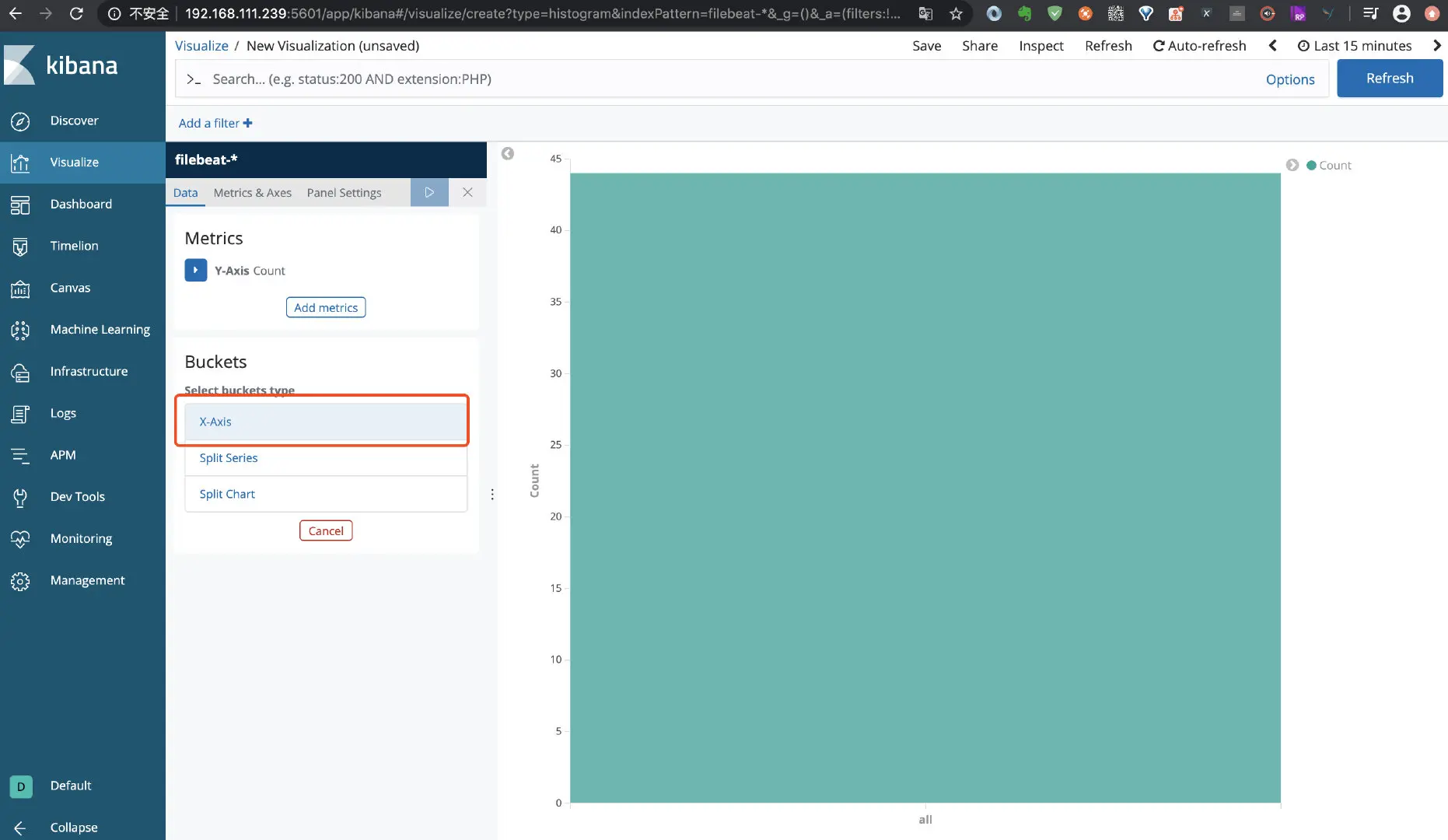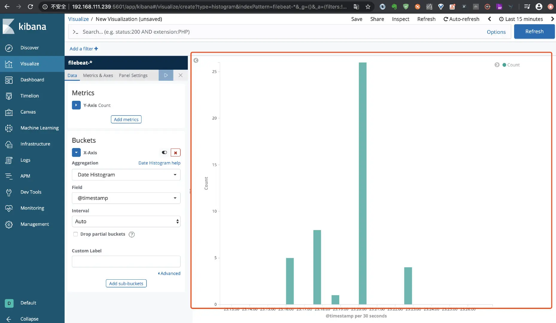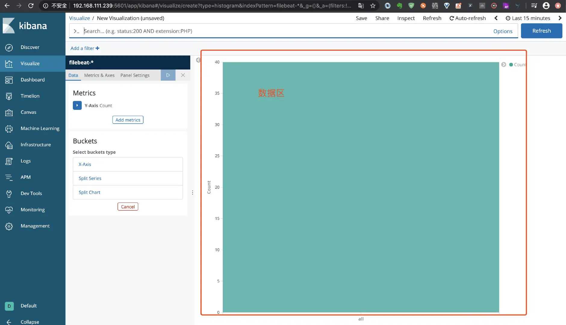 点击左侧菜单 Visualize, 如下图: