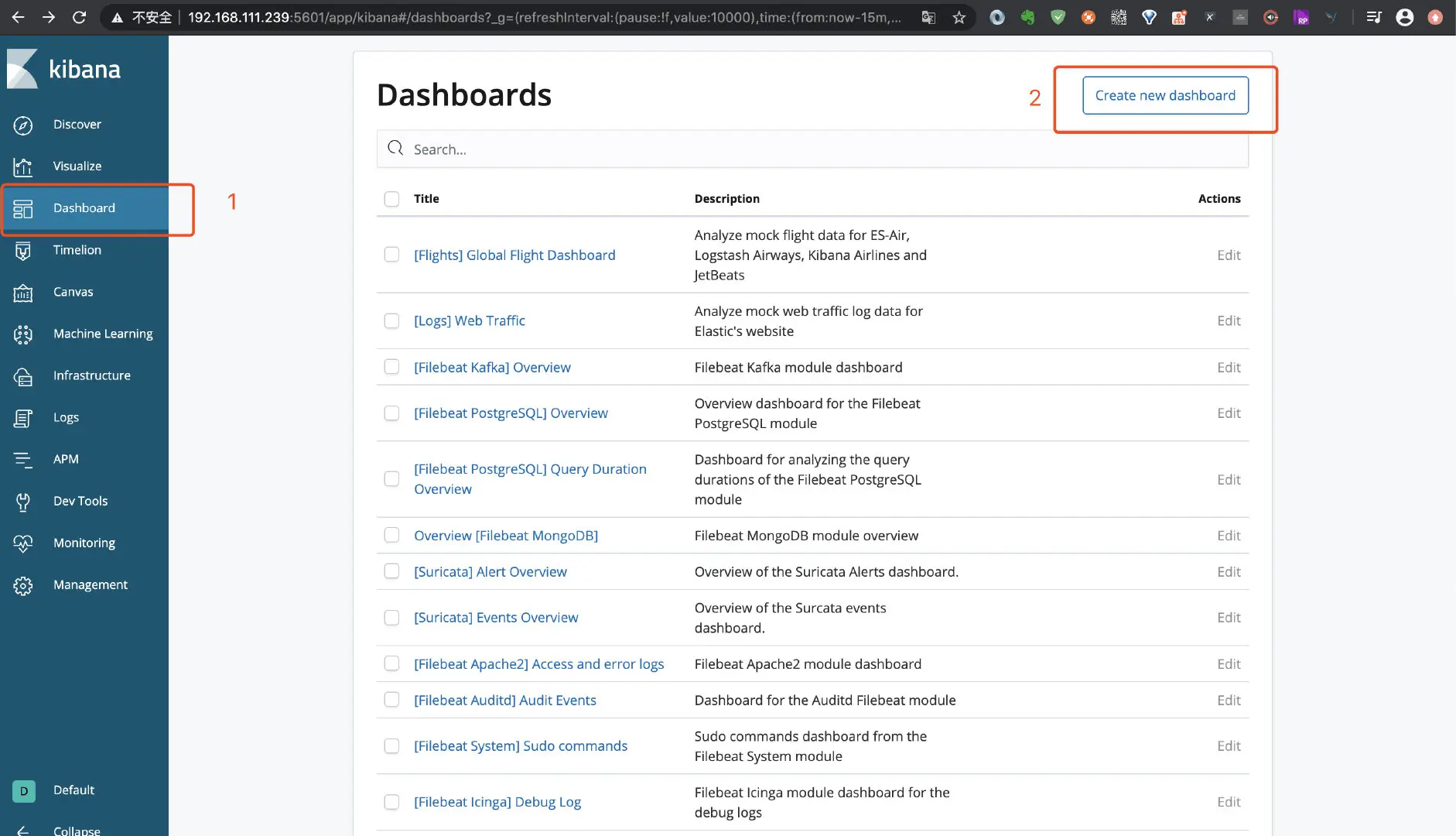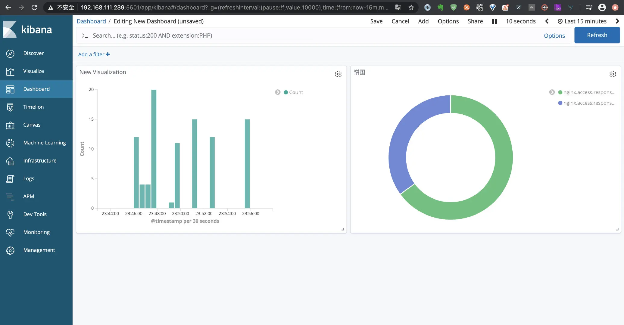 上一篇中已经分享了使用 Filebeat 安装和使用 Nginx 的日志仪表盘,除了使用提供仪表盘之外,我们自己也可以根据需要进行自定义