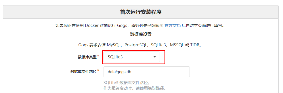安装完成后,我们第一次访问Gogs服务会显示一个设置页面,访问地址:http://192.168.5.19:10080/