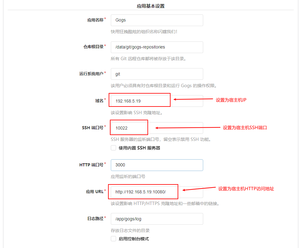 10022对应的是Gogs的SSH服务端口,10080对应的使用Gogs的HTTP服务端口,我们还将容器的数据目录挂载到了宿主机的/mydata/gogs目录下,这样就算我们重新创建容器数据也不会丢失。