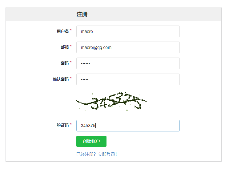 - 配置好以后会直接跳转到登录界面,首先注册一个帐户;