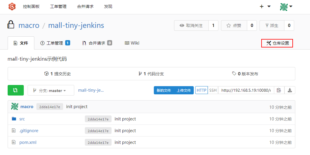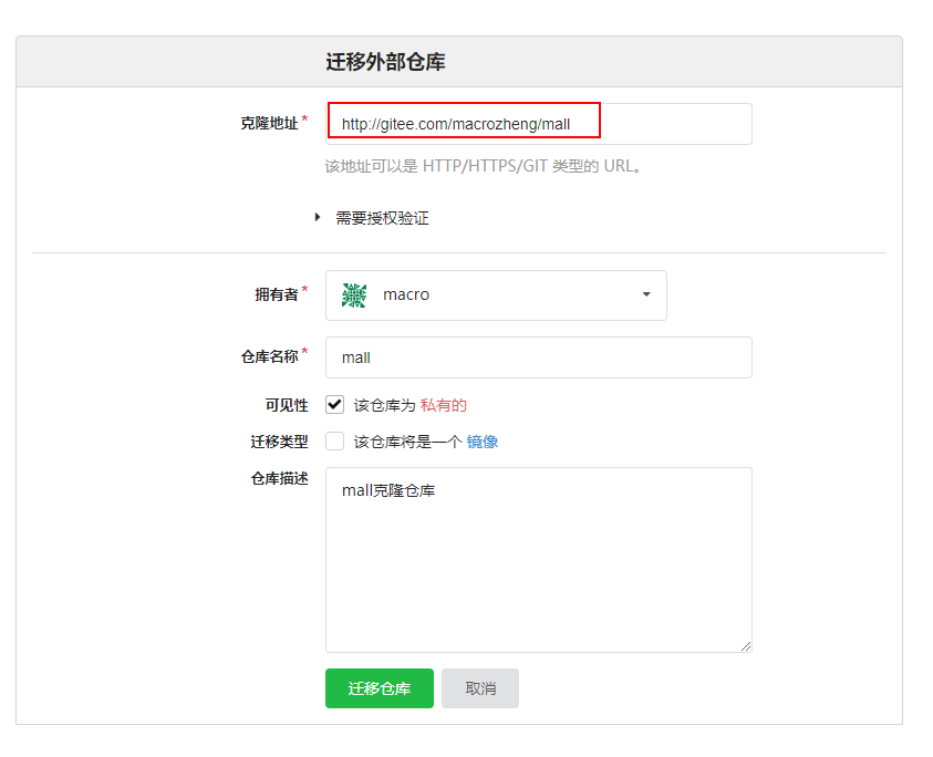 - 创建成功后直接使用克隆地址即可克隆该仓库;