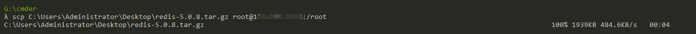 从官网下载了 5.0.8 的源码包之后,就从我本地(win系统)通过 scp 命令上传到服务器。如下,