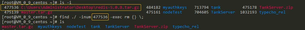 那么知道了文件索引节点号,我们就可以通过以下的格式来删除它对应的文件。
