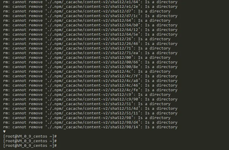 幸好这是个目录文件,也幸好我没用 rm -rf 递归删除文件,要不然,这个文件夹就废了。下边继续执行下去,还要删除 npm,天知道最后会不会把系统文件也删了。