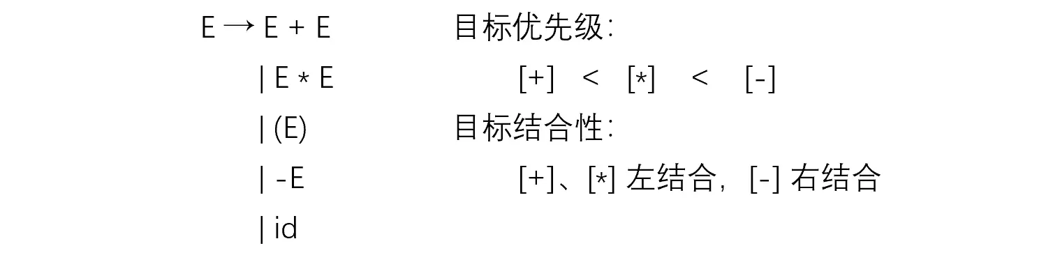 【例】改写下面的二义文法为非二义文法。图右侧是要达成的优先级和结合性