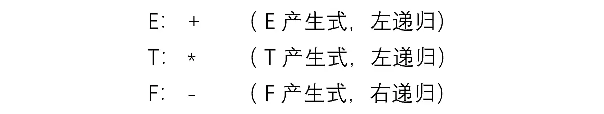 - 对于 A → αAβ,若 A 在终结符左侧出现(即终结符在 β 中),则 A 产生式具有左结合性;