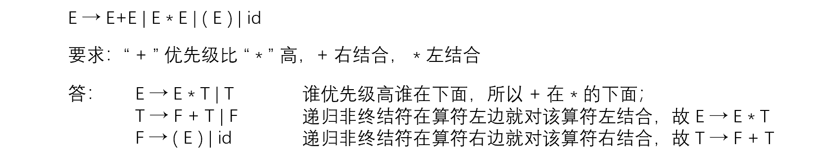 - 若要运算有左结合性,需要让递归非终结符在终结符左边。相对的,递归非终结符在右边则会让运算右结合。