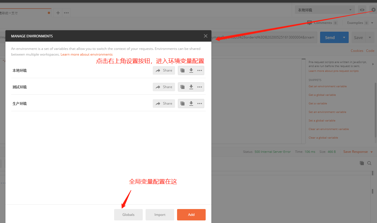 单次请求中一次性使用在Headers添加Authorization:Bearer {{token}};如果想复用token,在下图右下角红框点击Prese进入Manage Prese,header添加到Prese管理,在其他请求里选择是否使用该header(手动添加)。