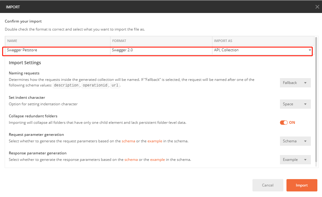 无论通过http://localhost:9999/v2/api-docs下载成json再导入,还是通过链接导入都不能;因为postman目前只支持OpenAPI。