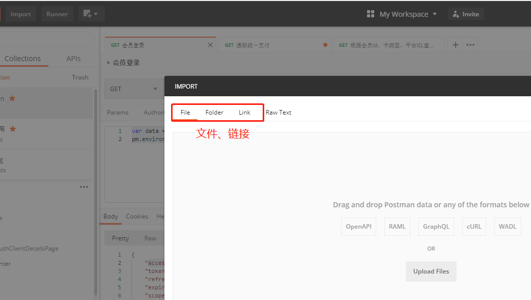 复制openapi脚本通过postman左上角import选择Raw Text导入,如下图所示