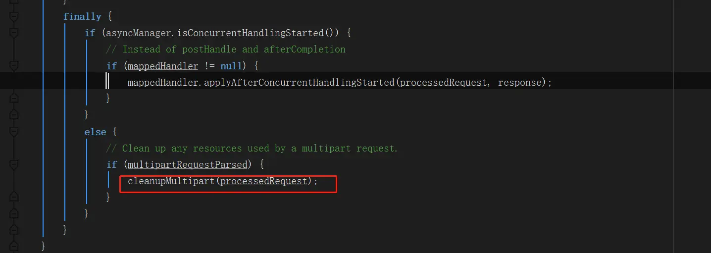 布尔变量multipartRequestParsed,判定在finally是否需要进行文件清理。
