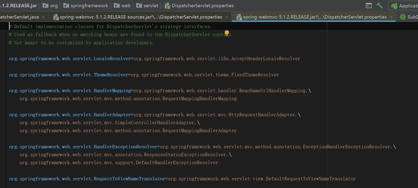 这个HandlerMapping其实在配置文件中已经有了配置,路径是 org\springframework\web\servlet\DispatcherServlet.properties 这个文件中。这里我们主要看的是RequestMappingHandlerMapping,这个其实就是平时代码中在Controller方法上写的@RequestMapping注解,通过这个注解将对应方法和请求地址的关联注入到Mapping中。