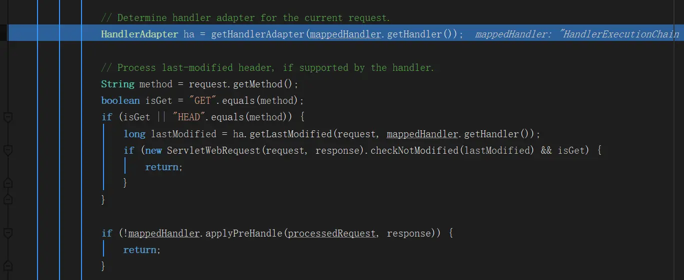 接下来,继续回到doDispacth()方法,这里会获取request的方法类型,判定是不是Get类型,get请求是有一个缓存。