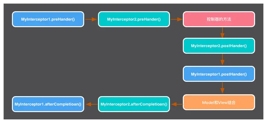 由applyPreHandle、applyPostHandle、triggerAfterCompletion、这三个方法可以得知拦截器的执行顺序,下面我用一张图来描述
