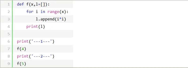 当缺省(默认)参数是一个列表时,会出现预期之外的结果,代码如下: