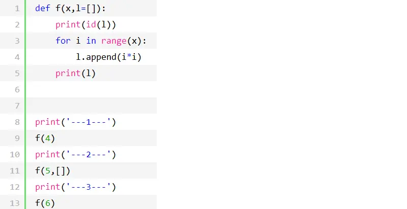 结果会发现执行传递空列表的函数时打印的id不一样,而没有传递的一样。当传递空list时函数体当中会使用传递的空list,没有传递时,使用函数默认的list。所以会产生以上结果
