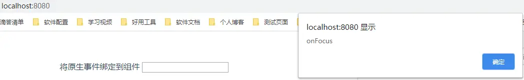<BaseInput1 label="将原生事件绑定到组件" @focus="onFocus" v-model="value"/>