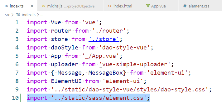 webpack工程化项目如何实现elementUI 本地化 wino 2020-05-27 201 阅读1分钟 1.index.html中去掉对于外部样式的请求链接 2.找到请求外部样式的完整链接,直接在地址栏请求自动下载 总共需要下载3个文件(.css、.wtff、.ttf) 注意请求的链接会决定你是用哪个版本的elementUI样式 要直接请求,让他自动下载,不然直接拷贝的样式文件会出错(重要) 需要放到static目录下webpack打包才会打进去 3.在项目的入口文件中引入主样式 4.在webpack配置文件中增加处理wtff.ttf格式的文件loaders