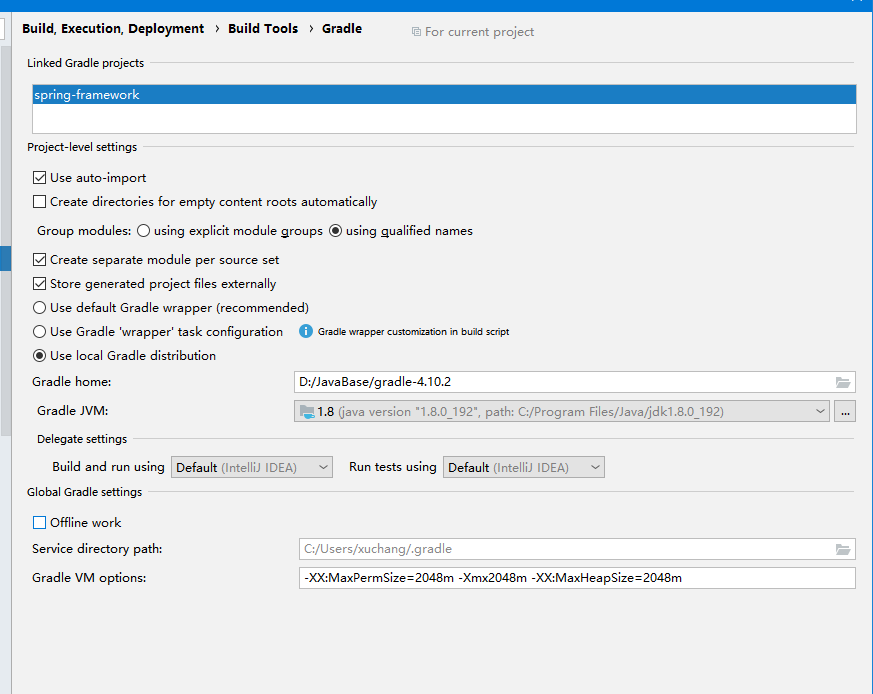 Service directory path指定了gradle仓库: C:\Users\xuchang\.gradle