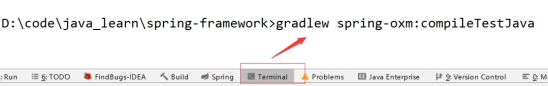 打开Terminal中端,输入 如下命令编译spring源码,等待结果